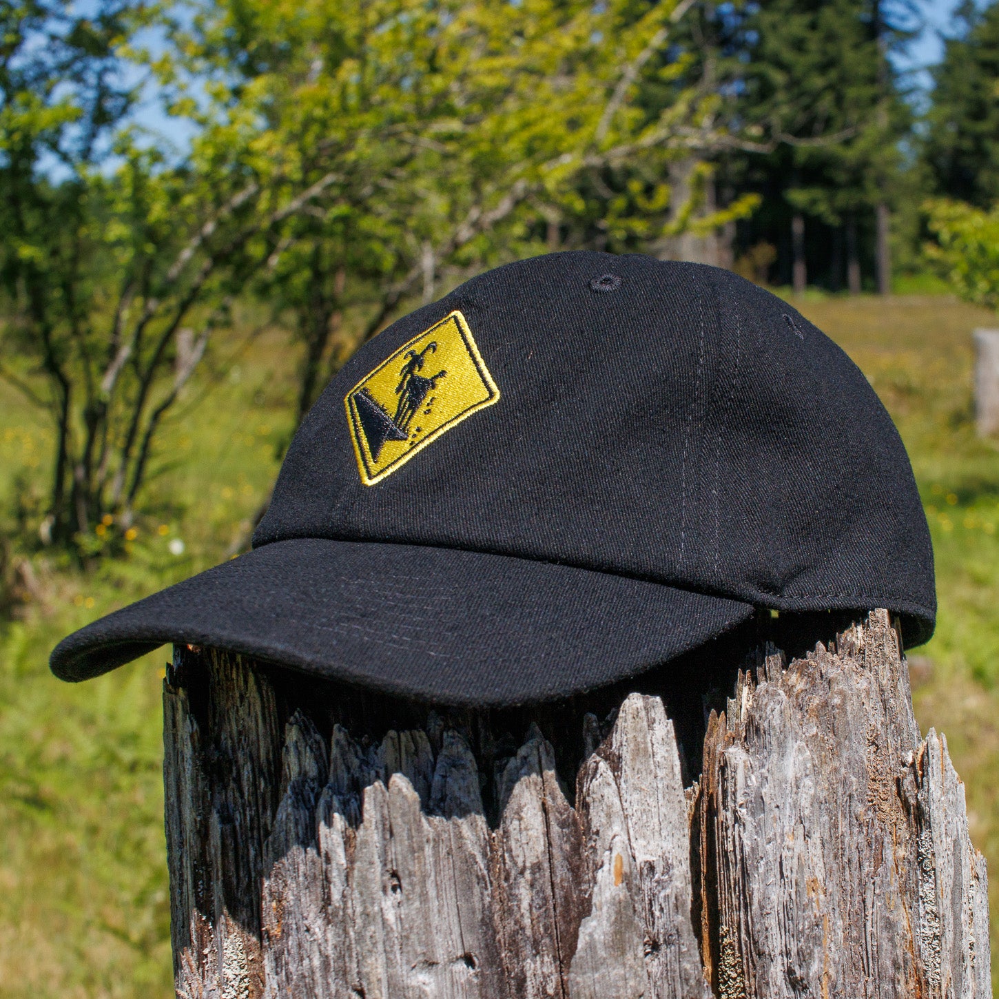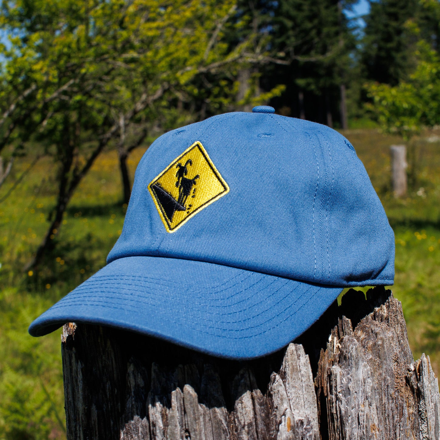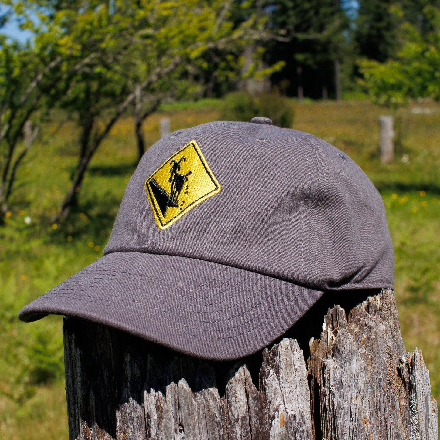 Featuring an embroidered version of our famous "Caution: Goats on Roof!" logo.