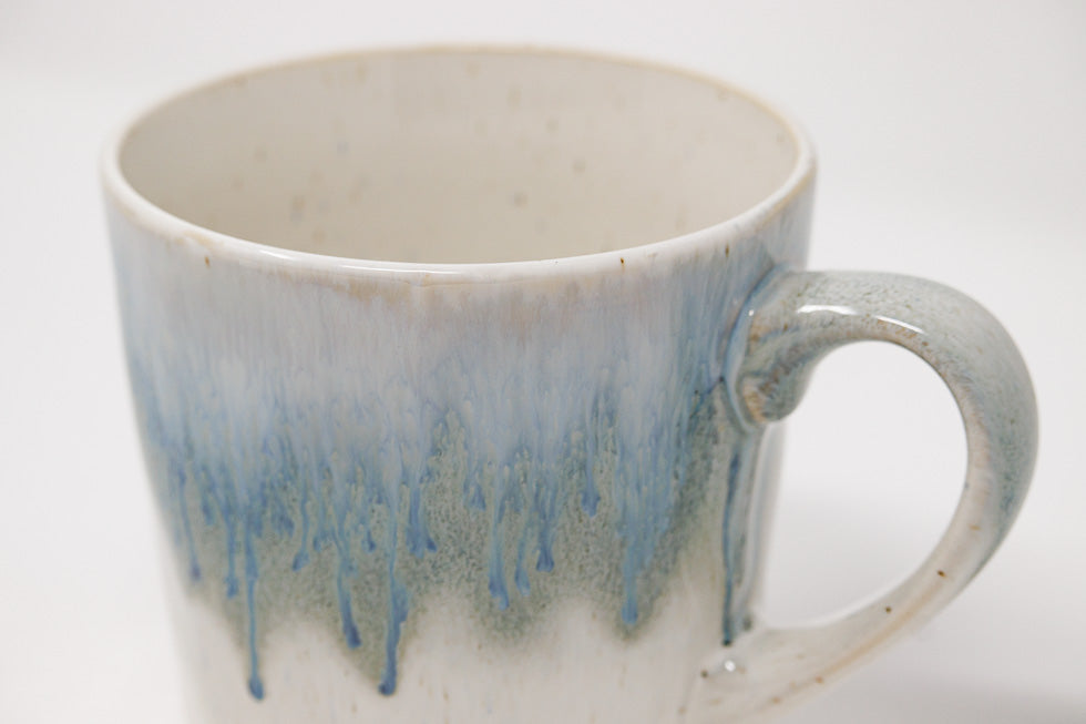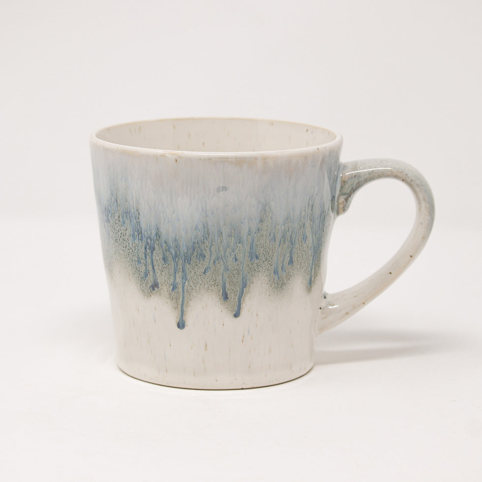 Stoneware mug with a design inspired by waves breaking on the ocean shore.