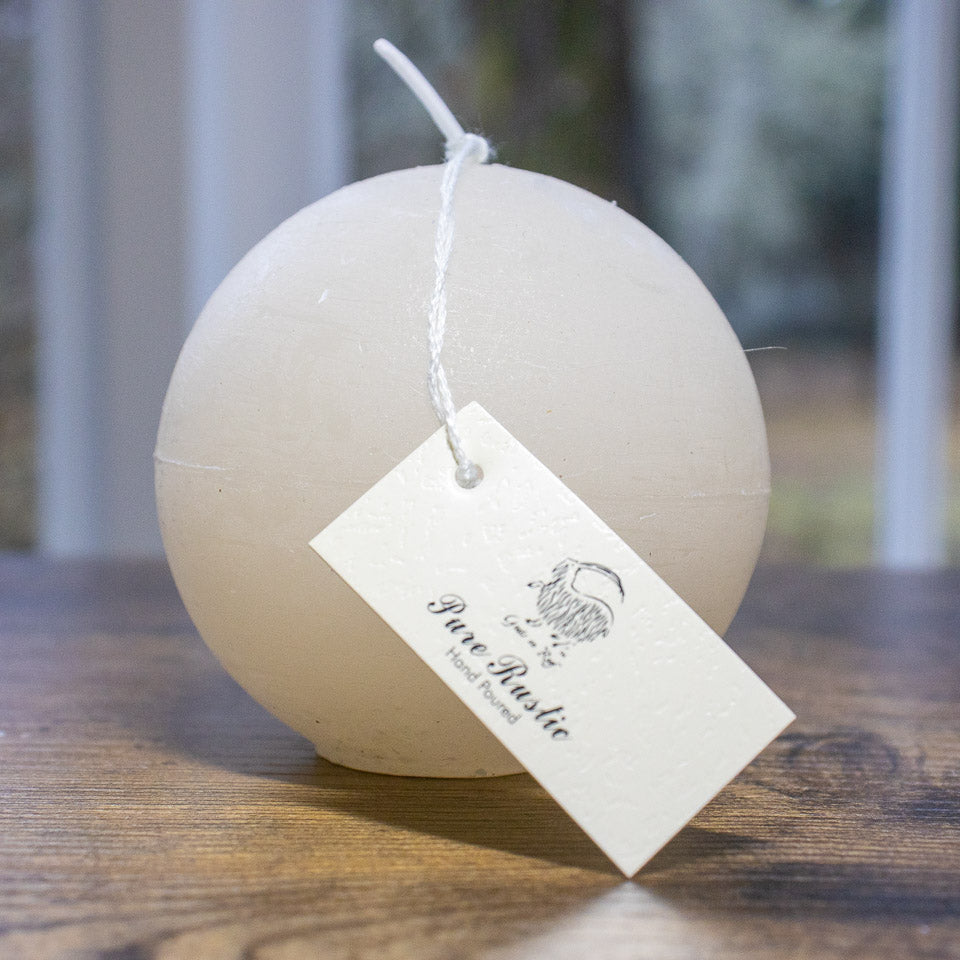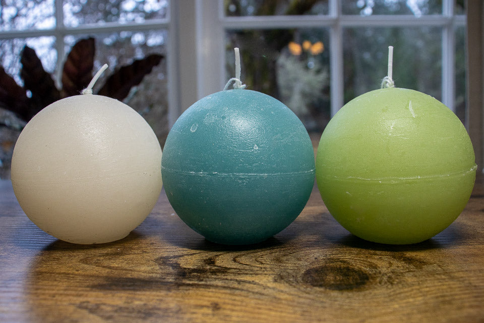 Our hand poured rustic style ball candles are available in three different colours.