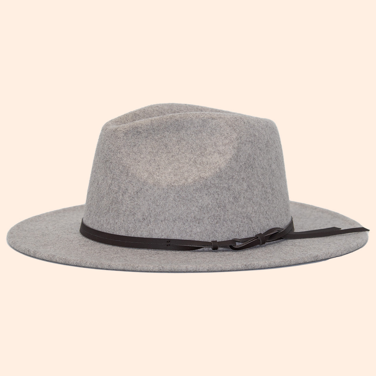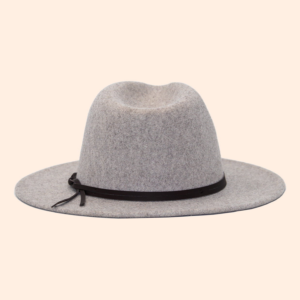 A grey wool field hat with leather band.