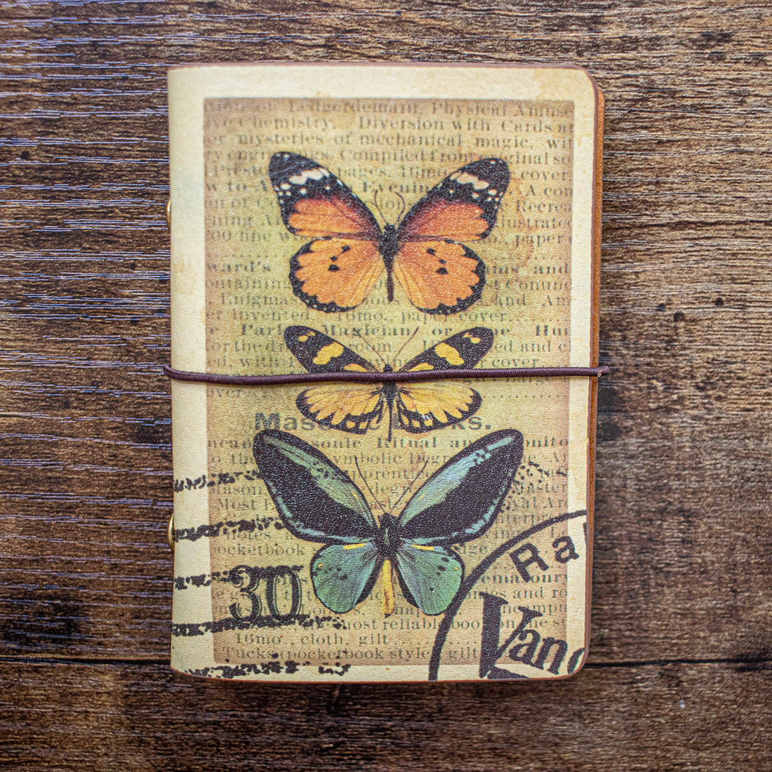 These pocketsize mini notebooks feature leather covers and are secured with a band to keep from flipping open.