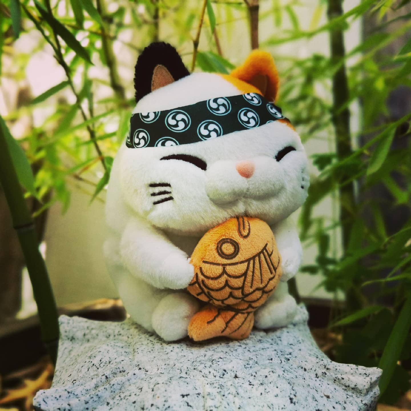 Soft, fun and stuffed with fluff, this cat is ready for you to take it home. It's enjoying a traditional Japanese taiyaki cake, and is super kawaii (cute)!
